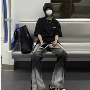 Spliced Jeans With Old Zippers, High Street Insets, Trendy Gradient Straight Tube Loose Wide Leg Pants, Children’s Jeans